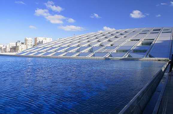 1995年后重建了亞歷山大圖書館,占地4萬平方米,它不僅是埃及的重點建筑項目,也是聯(lián)合國教科文組織在世界范圍內(nèi)的重大科研和建筑項目,它的造型是從77個國家的設計中優(yōu)選的