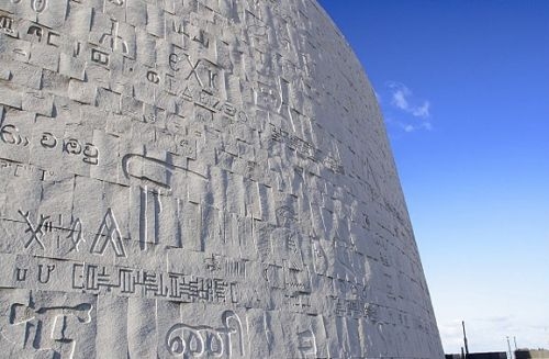 令人稱奇的是,無論從哪個角度看,亞圖主體建筑都像是一輪斜陽,象征著普照世界的文化之光。在外圍的花崗巖質(zhì)地的文化墻上,鐫刻著包括漢字在內(nèi)的世界上50種最古老語言的文字、字母和符號,凸顯了文明蘊藏與文化氛圍的構(gòu)思和創(chuàng)意。