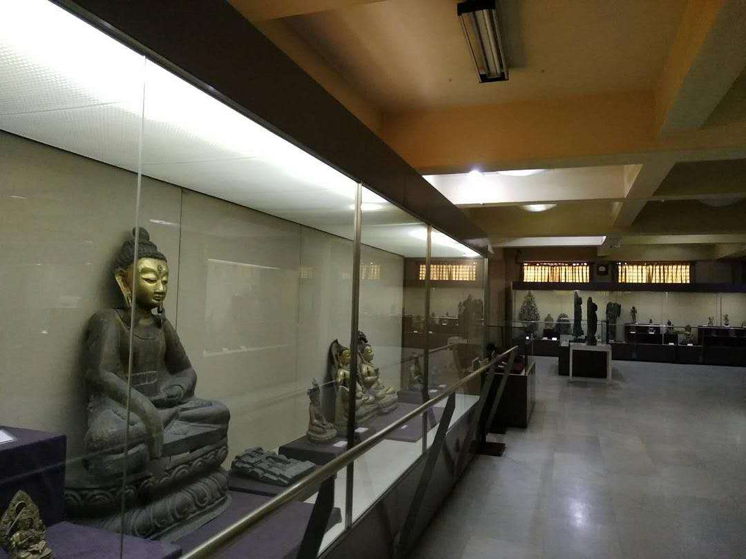 館內(nèi)分石雕、古畫(huà)、木刻、鑄像等陳列館,陳列有 2 世紀(jì)的菩薩、7 世紀(jì)的釋迦牟尼之母摩耶夫人的雕像,是尼泊爾古代雕刻、鑄造、繪畫(huà)藝術(shù)薈萃之處。藝術(shù)館底層陳列室,有許多常人一般大小的泥塑群像。他們雖然服飾各異,但造型非常生動(dòng),形象逼真。這里是尼泊爾各民族風(fēng)尚的藝術(shù)陳列館,稱為民族館,共有 13 組塑像,分別表現(xiàn)了尼泊爾人民的風(fēng)俗人情。博物館大院的南面,是馬亨德拉國(guó)王紀(jì)念館。這是一幢重檐寺廟式建筑,門(mén)楣檐柱刻滿神像,屋頂橫列 7 座小尖塔。館內(nèi)分 13 個(gè)陳列室,以實(shí)物和圖片、錄音帶和影片等資料,反映了馬亨德拉的生平經(jīng)歷和生活。博物館還特辟有兒童室,主要陳列世界各地的蝴蝶和鳥(niǎo)、獸標(biāo)本。