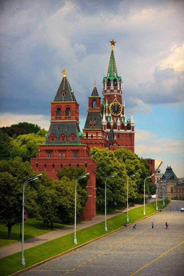 克里姆林宮為紅場(chǎng)最主要建筑,是俄羅斯民族最負(fù)盛名的歷史豐碑,也是全世界建筑中最美麗的作品之一。它初建于12世紀(jì)中期,15世紀(jì)莫斯科大公伊凡三世時(shí)初具規(guī)模,以后逐漸擴(kuò)大。16世紀(jì)中葉起成為沙皇的宮堡,17世紀(jì)逐漸失去城堡的性質(zhì)而成為莫斯科的市中心建筑群。克里姆林宮南臨莫斯科河,西北接亞歷山大羅夫斯基花園,東南與紅場(chǎng)相連,呈三角形,周長(zhǎng)2000多米。20多座塔樓、參差錯(cuò)落地分布在三角形宮墻邊,宮墻上有5座城門(mén)塔樓和箭樓,遠(yuǎn)看似一座雄偉森嚴(yán)的堡壘。宮殿的核心部分是宮墻之內(nèi)的一系列宮殿,建筑氣宇軒昂,體現(xiàn)出歷代俄羅斯人的聰明才智。另有政府大廈和各種博物館。最具特色的是一組有洋蔥頭頂?shù)母咚鼈兪窃诩t磚墻面用白色石頭裝飾的,再配上各種顏色外表,如金色、綠色以及雜有黃色和紅色等。它由俄著名建筑師巴爾馬和波斯尼設(shè)計(jì),不同于歐洲古代的哥特式與羅馬式,而與東方清真寺風(fēng)格頗為相似??死锬妨謱m也吸收了西方建筑的精粹,它的幾幢主要建筑都是由意大利設(shè)計(jì)師設(shè)計(jì)的,所以,克里姆林宮建筑藝術(shù)上博采眾長(zhǎng)又獨(dú)具特色,獲得普遍贊譽(yù)。