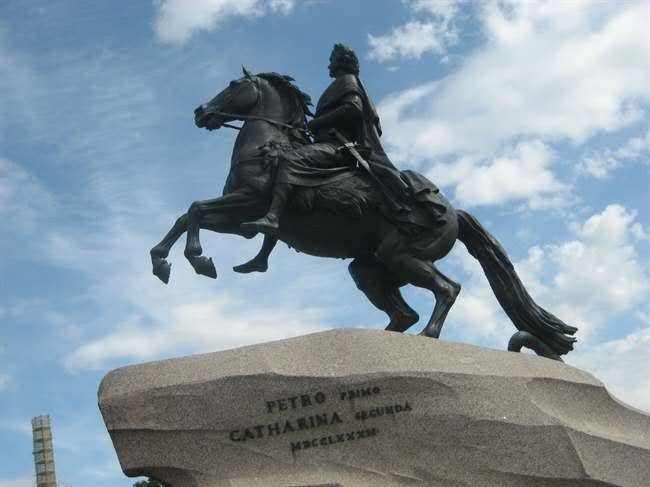 彼得大帝青銅騎士像位于涅瓦河南岸,它是俄羅斯圣彼得堡的象征,1782年法國(guó)著名的雕塑家法爾科耐在這里做出了它一生中最完美的杰作。以武力奪取沙皇彼得大帝青銅騎士像寶座的德國(guó)女人葉卡捷琳娜二世為了證明她是彼得大帝正統(tǒng)的繼承人,修建了這個(gè)彼得青銅騎士像。