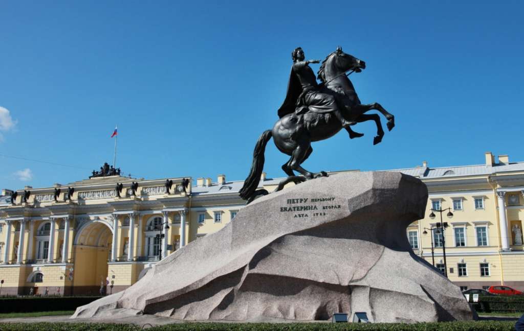銅像的底座是40噸重的一整塊花崗石,是在圣彼得堡芬蘭灣處找到的,用了5個(gè)月的時(shí)間運(yùn)到這里,在花崗石上面刻著“葉卡捷林娜二世紀(jì)念彼得大帝一世于1782年8月”。版權(quán)所有山東聊城聊之旅國(guó)際旅行社有限公司,轉(zhuǎn)載必究!現(xiàn)在大家看到的彼得大帝所騎的馬代表俄羅斯,它雙腳騰空,好像要沖破一切阻力勇往直前,在馬掌下有一個(gè)踏死的大蛇,它代表了一切阻止彼得大帝改革維新的守舊派,正如雕塑展示的一樣,彼得大帝沖破了重重阻力,在這片沼澤地建起了這座美麗的城市圣彼得堡,并建都于此,把落后、封建、貧窮的俄羅斯,帶向了海洋與繁榮。