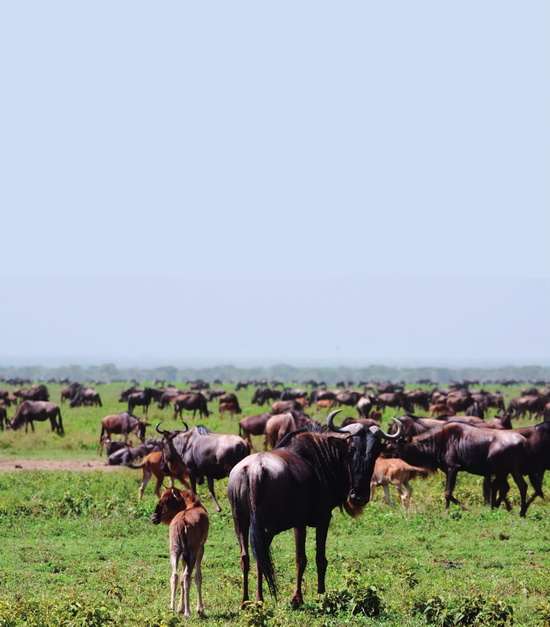 塞倫蓋蒂在馬賽語中是“無邊的平原”。她有著大地奉獻(xiàn)給人類最大規(guī)模的動物群落:無數(shù)的角馬(牛羚)、斑馬、湯姆森瞪羚、格蘭特瞪羚、斑鬣狗、長頸鹿以及眾多的獅子、大象、黑犀牛、水牛和花豹等聞名世界的非洲五大獸,還有300多種鳥類,構(gòu)成了世界最大的動物自然生態(tài)系統(tǒng)。每年的五六月之間,塞倫蓋蒂的食草動物(大約有150萬只角馬和斑馬,30萬只湯姆森瞪羚和3萬只格蘭特瞪羚)從中央平原向西部常年有水的地區(qū)遷徙;到七八月之間其中一部分又從塞倫蓋蒂向馬賽馬拉草原遷徙,浩浩蕩蕩的動物大軍形成震驚世界的壯麗景觀。在遷徙旅途中,“千軍萬馬”過馬拉河的景象也可謂是大遷徙的一大亮點(diǎn)。