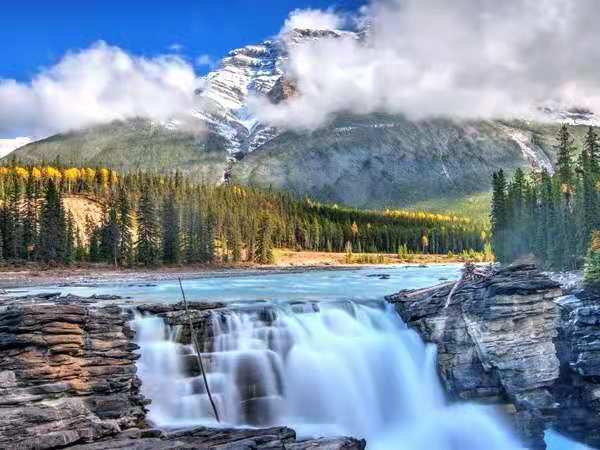 弓河瀑布(Bow River Fall)位于風(fēng)景秀麗的弓河(Bow River)之上,河水沿著班夫北面的山勢而來,在市區(qū)繞過一個弧度再往北而去,形狀就像一張弓,因此而得名。