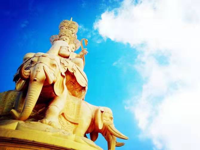 2002年,為了響應四川省人民政府提出,把峨眉山建設成“中國第一山”的號召,峨眉山佛教協(xié)會重新規(guī)劃并制定了“恢復華藏寺改造工程”方案。本著宏揚峨眉山佛教,挖掘歷史文化遺存,振興旅游的原則,做好科學規(guī)劃,創(chuàng)建以人為本的和諧社會。搬遷“703電視臺”,拆除原華藏寺前部,整治環(huán)境,由峨眉山佛教協(xié)會具體承擔,建成了高48米(含法臺須彌座)的“十方普賢”銅像,以恢復華藏寺(金頂)昔日之莊嚴。建設工程已于2004年8月動工,2005年底竣工。2006年6月18日,經(jīng)政府批準,舉行了隆重莊嚴的華藏寺落成典禮和十方普賢像開光儀式。