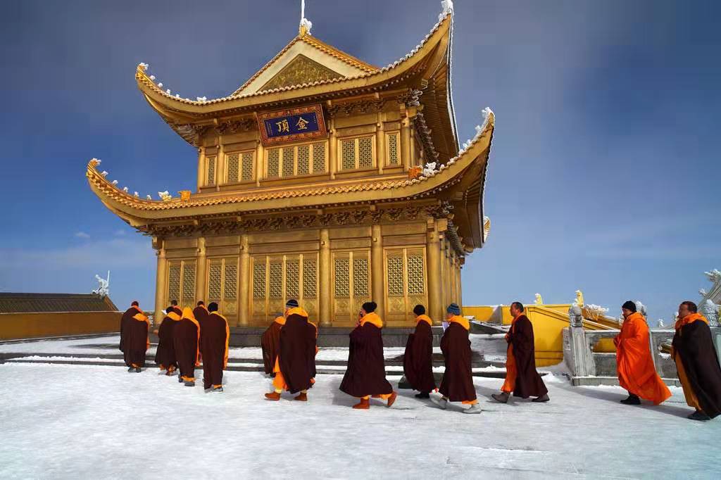 金頂華藏寺海拔3千多米,氣候嚴寒,生活在這里的僧人們要克服生活、氣候等諸多方面困難。金頂重建以來,僧人們常年居住在這里,精心守護著佛寺,并逐年進行維修,創(chuàng)造條件,熱情接待國內(nèi)外各界人士,為建設峨眉山佛教寺院、發(fā)展峨眉山旅游事業(yè)作出了貢獻。