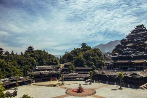 蚩尤九黎城位于重慶市彭水縣紹慶街道與靛水街道結(jié)合部的亭子壩,東經(jīng)摩圍山隧道與彭水老城區(qū)相連,南接彭水新城,北至烏江并與湘渝高速下線互通??偨ㄖ娣e11萬平方米, 是國家AAAA級(jí)旅游景區(qū)。景區(qū)以苗族始祖蚩尤文化為主線,由40余處單體景觀建筑構(gòu)成,集苗族文化、旅游景區(qū)、游客接待于一體,繼承和延續(xù)了苗族歷史文化、民俗風(fēng)情,重現(xiàn)“九黎之城”歷史風(fēng)貌,是展示和傳承苗族文化的窗口和基地,彰顯出的是苗族文化的厚重和豐富的內(nèi)涵。已經(jīng)成為彭水最閃亮的城市名片、旅游名片,成為渝東南乃至湘鄂川黔渝邊區(qū)旅游廊道上璀璨的明珠。