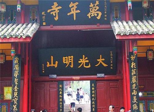 創(chuàng)建于東晉,時(shí)名普賢寺,唐僖宗時(shí)慧通禪師重建,更名白水寺;宋代易名白水普賢寺;明代神宗皇帝朱翊鈞御題“圣壽萬(wàn)年寺”,簡(jiǎn)稱萬(wàn)年寺,為峨眉山最早的六大古寺之一。