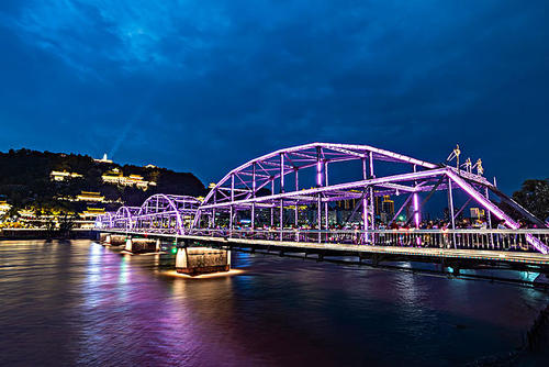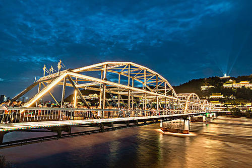 “黃啟炎傳,鐵漢秦章光隴坂;河清海晏,橋虹耀彩衛(wèi)金城?!边@座古老的橋梁依然橫跨黃河之上,與白塔山相呼應。“舉頭迎白塔,緩步過黃河。對岸兩山峙,中流意興多?!壁w樸初的詩句頗能勾出人的游興。和諸多橋梁相比,中山橋的觀賞和紀念價值似乎比交通作用更有意義。中山橋原名蘭州黃河鐵橋,是黃河上修建最早的鐵橋,素有“天下黃河第一橋”的美稱。位于蘭州市區(qū)中心白塔山下,南接中山路、南濱河路,北連靖遠路、金城路,是蘭州市區(qū)重要交通樞紐工程。中山橋建成后,時為黃河上游和蘭州黃河兩岸唯一的橋梁,方便了兩岸經(jīng)濟生活,加強了蘭州與西北地區(qū)各省的政治.經(jīng)濟和文化交流。在舊中國,與濟南道口鐵橋、鄭州鐵橋同列為黃河上三大橋梁。1928年為紀念孫中山先生而改稱中山橋,沿用至今。