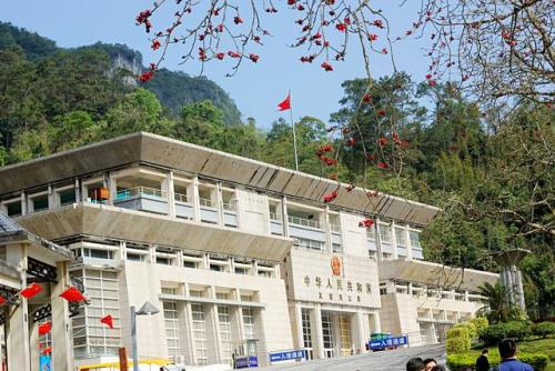 憑祥自古就是桂西南的邊防要地,友誼關(guān)則是中越邊境上最大、最重要的關(guān)防。它位于憑祥市區(qū)西南18公里處,兩邊高山矗立,形勢險峻,卡在峽谷通道上。它是一座城樓式建筑,樓高22米,底層是厚實的城墻,中央為圓拱頂?shù)某情T,非常雄偉。鑲在拱門上的“友誼關(guān)”三個大字,是陳毅元帥親筆題書的。