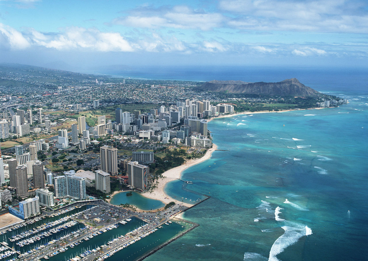 1941年12月7日,日本法西斯在2個(gè)小時(shí)中出動350余架飛機(jī)偷襲珍珠港美軍基地,炸沉炸傷美軍艦艇40余艘,炸毀飛機(jī)200多架,斃傷美軍4000多人,主力戰(zhàn)艦“亞利桑那”號被1760磅重的炸彈擊中沉沒,艦上1177名將士殉難。慘重的損失才使美國定下決心投入到反法西斯戰(zhàn)爭中去。1962年,沉艦上建起了一座乳白色的亞利桑那紀(jì)念館,以永遠(yuǎn)紀(jì)念珍珠港事件中陣亡的美軍官兵。在紀(jì)念堂莊重簡樸的瞻仰大廳里,人們透過窗口仍可看到橫臥海底的亞利桑那號戰(zhàn)列艦遺骸。版權(quán)所有山東聊城聊之旅國際旅行社有限公司,轉(zhuǎn)載必究! 檀香山經(jīng)過100多年的開發(fā),已從一個(gè)貧窮的漁村發(fā)展成為現(xiàn)代化的旅游城市和商埠。誘人的熱帶風(fēng)光、迷人的海灘、奇異的花草和濃郁的民族風(fēng)情使它成為舉世推崇的旅游勝地,最多時(shí)一年有上千萬游客去那里尋幽覽勝。現(xiàn)任市長是柯克•考德威爾(Kirk W. Caldwell)