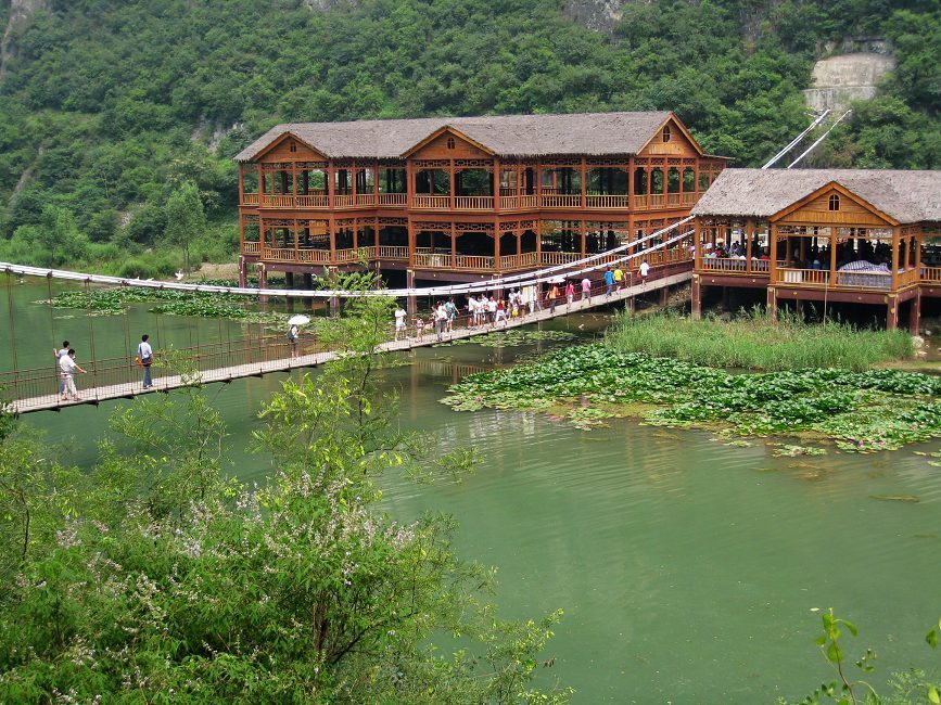 青天河之水天上來,這里三步一泉,五步一瀑,青山繞碧水,綠樹掩古寺,飛泉流瀑,如詩如畫。有世界獨一無二的天然長城及世界奇觀石雞下蛋;有中原獨一無二的高山峽谷濕地景色;有最大出水量每秒7立方米、洞徑2.18米的“華夏第一泉”三姑泉及由此泉水形成的長達(dá)7.5公 里的大泉湖。這里碧波蕩漾,嫵媚婉約,水隨山勢,百轉(zhuǎn)千回;野鴨隨水勢,掠過水面,水天一色;兩岸綠色掩映,獼猴嬉戲其中,湖內(nèi)行船蕩舟,舟移景異,船在畫中走,人在畫中游,如游漓江,似進(jìn)三峽,置身其中,您將從生活壓力中解放出來,得到最暢快最松弛的休閑。進(jìn)入西峽,兩岸青峰翠嶺,水面一平如鏡,楊柳臨溪傍水,荊林神韻通幽,古樸小舟伴著暮歸的老牛和牧童,一片田園牧歌式的風(fēng)光呈現(xiàn)在眼前。而游程中,產(chǎn)生于7000萬年前至今唯一身上有文字記載的世界罕見天然大佛、距今1500年的北魏摩崖石刻、北魏官道等人文景觀,會使你在這靜謐的環(huán)境中返樸歸真,去細(xì)細(xì)地體味和追溯歷史的腳步。