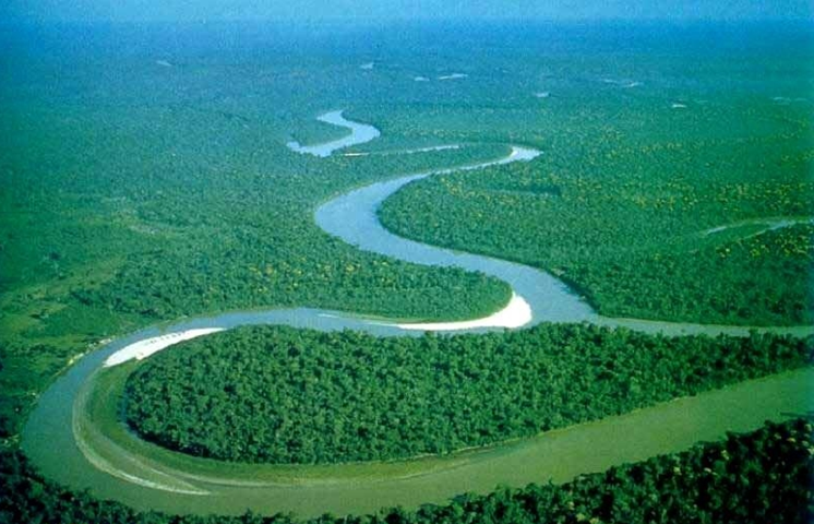 亞馬孫河自西向東流,沿途接納了源自安第斯山脈東坡、圭亞那高原南坡、巴西高原西部與北部的河流1000多條,形成龐大的亞馬孫河水系網(wǎng),其中7條長(zhǎng)度超過(guò)1600公里,20條超過(guò)1000公里。其中長(zhǎng)度超過(guò)1500km的支流有17條,如左岸的普?qǐng)D馬約(Putu-mayo)河、雅背拉(Japura)河、內(nèi)格羅(Negro)河;右岸的茹魯阿(Jurua)河、普魯斯(Purus)河、馬代拉河、塔帕若斯(Tapajos)河、欣古(Xingu)河等,這些支流伸入到玻利維亞、哥倫比亞、厄瓜多爾、委內(nèi)瑞拉以及圭亞那等國(guó)。