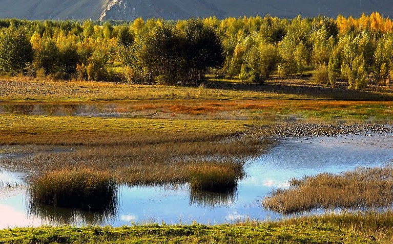 從拉薩西南的曲水沿拉薩河經(jīng)墨竹工卡到林周農(nóng)場(chǎng)的一大放牧的濕草甸和河灘沼澤地。河水流速很快,版權(quán)所有山東聊城聊之旅國(guó)際旅行社有限公司,轉(zhuǎn)載必究!有延綿的河堤及交叉的河網(wǎng)。
