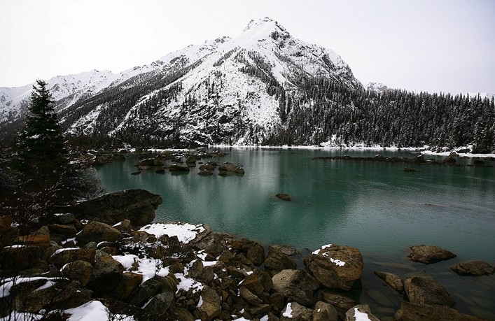 然烏湖(N29°25',E96°45'),位于昌都地區(qū)八宿縣境內(nèi)西南角,距離縣城白馬鎮(zhèn)約90千米的然烏鄉(xiāng),面積為22平方千米,湖面的海拔高度為3850米。意為“尸體堆積在一起的湖”,傳說中湖里有頭水牛,湖岸有頭黃牛,他們互相較量角力,死后化為大山,兩山相夾的便是然烏湖。形成是由于山體滑坡或泥石流堵塞河道而形成的堰塞湖。
