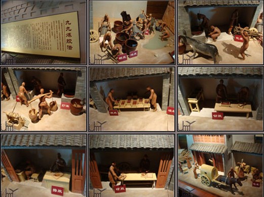 本廳主要展示的是阿膠的起源、原料演化、藥理作用、阿膠與東阿獨特的水質(zhì)條件的特殊關(guān)系,以及傳統(tǒng)阿膠生產(chǎn)的場景。