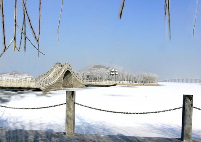 又名十七孔橋,是東阿縣跨度最大的一座橋。由十七個橋孔組成,總跨度142米,水面高度9.9米,它似一條玉帶,鑲嵌在碧波蕩漾的洛神湖上。