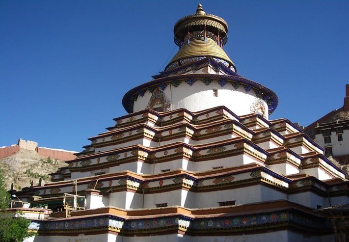 白居寺,海拔3900米,位于江孜縣城東北隅,距拉薩南約234公里處,距日喀則東約100多公里處。白居寺是漢語(yǔ)名稱。藏語(yǔ)簡(jiǎn)稱“班廓德慶”,意為“吉祥輪大樂(lè)寺”。白居寺始建于明宣宗宣德二年(1427),歷時(shí)10年竣工。有人說(shuō)是1418年由克珠杰和熱丹兗桑帕二人共同修建的。