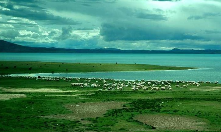 湖區(qū)為半干旱草原地帶,年均氣溫-0.6℃~-3℃,最熱月均氣溫9.4℃。年降水量約290毫米,6月~9月降水量占全年的90%,夏季多冰雹。湖周地區(qū)海拔5100米以下分布有紫花針茅草原;4600米以下湖積平原上分布有固沙草和白草草原;山麓分布有羽狀針茅和藏沙蒿草原;草原帶以上特別是山地陽(yáng)坡,是由小蒿草和羊茅組成的高山草甸或高山草原化草甸。色林錯(cuò)湖區(qū)是傳統(tǒng)的牧區(qū),主要放養(yǎng)牦牛、綿羊。