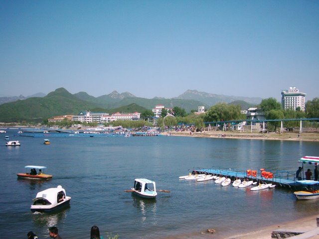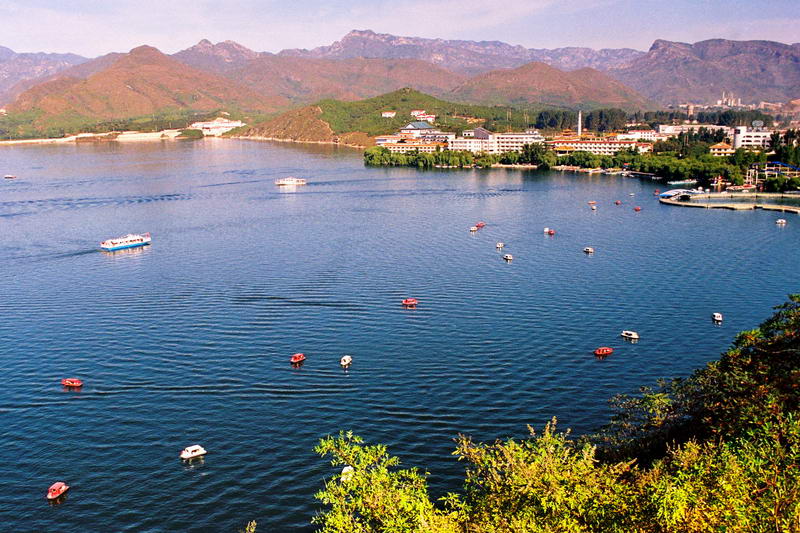 雁棲湖旅游區(qū)距懷柔縣城8公里,因每年春季有成群的大雁、仙鶴等珍禽候鳥在此棲息,故而得名。湖區(qū)氣候宜人,湖水清純碧藍,是開展水上娛樂活動和休閑度假的理想場所。雁棲湖三面環(huán)山。北面群山綿亙、重巒疊嶂,萬里長城隱現(xiàn)其間,西面有紅螺寺,南面有一望無際的華北平原;東岸有元寶山、金燈山。登山遠眺,藍天碧水,綠野田園,壯麗景色盡收眼底。