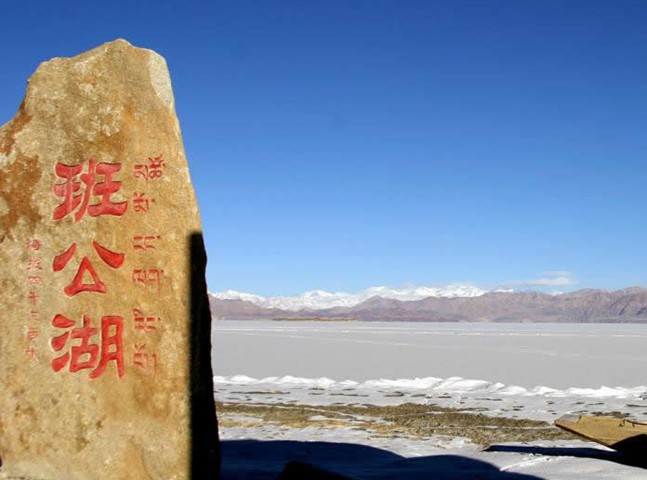 班公湖:藏語稱錯(cuò)木昂拉仁波,意思是“明媚而狹長的湖泊”。