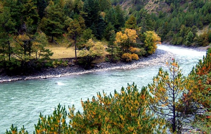 扎曲河谷風(fēng)景奇特,春夏秋冬,兩岸風(fēng)景隨四季變化,多姿多彩。春夏時(shí)節(jié),溝里綠樹(shù)遍野,蒼松古柏,傲然挺立,放眼望去,漫山皆綠,繁花爛漫,溝里到處芳香四溢,山上云蒸霞蔚,景色忽隱忽現(xiàn)。到處流水潺潺,山底江水清澈如綠帶,水波粼粼之間,有游魚(yú)嬉戲,讓人仿佛進(jìn)入了夢(mèng)幻境界。
