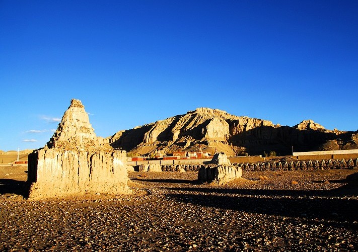 托林寺旁的象泉河谷里,有一列長達(dá)數(shù)百米的上百座佛塔遺跡。另外,在河谷觀看扎達(dá)土林壯觀迷人的日出和日落也是難得的享受。