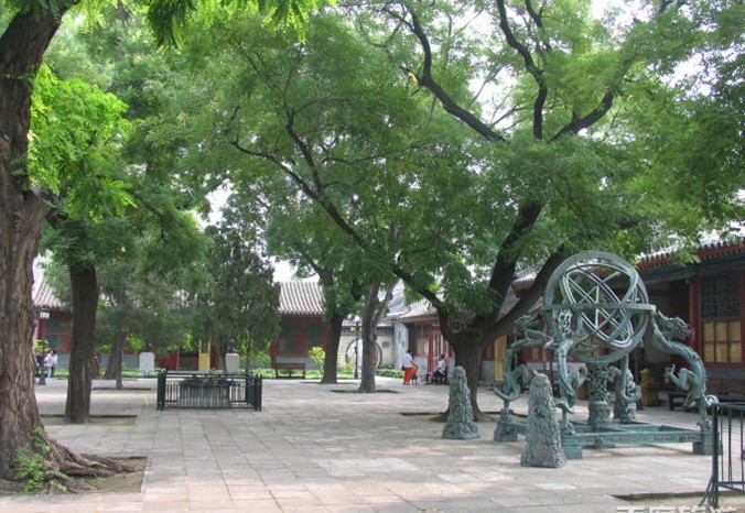 北京古觀象臺屬全國重點(diǎn)文物保護(hù)單位,位于北京市建國門立交橋西南角,古觀象臺始設(shè)于元代,原名“司天臺”。明初攻克北京時毀于戰(zhàn)火,殘存的天文儀器被運(yùn)往南京保存。明正統(tǒng)七年(1442年)時重建此臺,古觀象臺是由元代大都城的東南角樓改建而成的高臺磚砌建筑。改名“觀星臺”,并復(fù)制了一套儀器,明代臺上置有大型銅鑄天文儀器渾天儀、簡儀、渾象儀(天球儀)等,臺下是紫微殿、漏壺房、晷影堂等建筑,內(nèi)置圭表、漏壺等儀器。