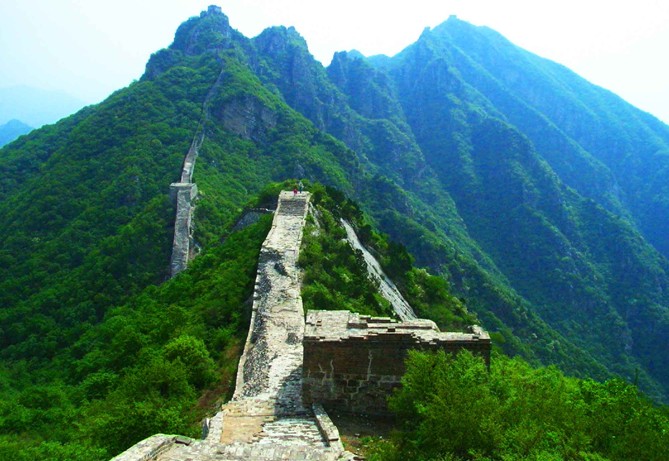 是北京一段最險峻、雄奇的長城,自然風化嚴重,沒有任何人工修飾,自牛犄角邊、南大樓、鬼門關(guān)、東西縮脖樓、東西油簍頂,箭扣梁、、將軍守關(guān)、天梯、鷹飛倒仰、北京結(jié)到九眼樓(望京樓)綿延20多公里,充分展現(xiàn)了長城的驚、險、奇、特、絕,能領(lǐng)略到原汁原味的古老的長城景觀。天梯、鷹飛倒仰、北京結(jié),九眼樓、一段路最險,從東向西走稍好一點,從西向東走更艱難。遇見倒塌的路段要繞出長城,在城墻的石縫里插上樹枝做梯子,再爬墻進去;天梯是一段70度陡坡、70-80米長的長城,版權(quán)所有山東聊城聊之旅國際旅行社有限公司,轉(zhuǎn)載必究!最窄處60公分寬,臺階40-50公分高、15公分臺面,要四肢并用地爬;鷹飛倒仰有一處長城直立倒塌,要南轅北轍地繞道迂回過去,下山70-80度陡坡,要不抓住樹枝,很難站??;北京結(jié)到望京樓一段在長城里,東側(cè)是城墻,西側(cè)是灌木,沒有臺階,非常難走。