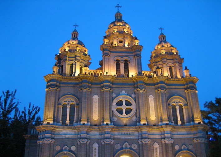 是北京四大天主教堂之一。由意大利籍利類思和葡萄牙籍安文思兩位傳教士創(chuàng)建。明末,2人在四川傳教。清初被清兵虜至北京,在肅王府當(dāng)差,順治十二年(1655),福臨賜給他們一所宅院和一塊空地(即今址),他們即在空地上建筑一座教堂,即北京城內(nèi)第二座圣堂(第一座為南堂),也就是最早的東堂。東堂院內(nèi),中間為天主堂,坐東朝西,共約30間,堂頂立十字架3座,中間大,兩旁小。堂內(nèi)有18根圓形磚柱支撐,兩側(cè)掛著耶穌受難等多幅油畫。堂南、西有教室,東有一院,內(nèi)有花池、平房、樓房,為神父住處。東堂內(nèi)曾保存有多幅宮廷畫師郎世寧繪的圣像,嘉慶十二年(1807年)失火后廢止。1884年,重建羅馬式大堂,在義和團(tuán)運(yùn)動(dòng)中又被燒毀。1904年,用“庚子賠款”重建(法國(guó)和愛爾蘭兩國(guó)合建),即現(xiàn)在的東堂。東堂院內(nèi),中間為天主堂,坐東朝西,面闊25米,共約30間,坐落在青石基上,堂頂立十字架3座,中間大,兩旁小。堂內(nèi)有18根圓形磚柱支撐,直徑65厘米,柱礎(chǔ)為方形,堂內(nèi)兩側(cè)掛著耶穌受難等多幅油畫。版權(quán)所有山東聊城聊之旅國(guó)際旅行社有限公司,轉(zhuǎn)載必究!占地近1萬平方米。為東城區(qū)重點(diǎn)保護(hù)文物。 北京王府井大街的北段正在進(jìn)行改造,原先圍繞神秘教堂的圍墻被拆除,吸引了眾人的目光?;疑臍W式尖頂建筑因其古老而越發(fā)透出神秘,新鋪就的門前廣場(chǎng)在綠樹環(huán)繞中更具濃郁的人文色彩。在周圍的現(xiàn)代化建筑映襯下,王府井天主教堂成了這條大街上的新景點(diǎn)。占地8000多平方米的教堂門前廣場(chǎng)已鋪裝完畢,廣場(chǎng)兩側(cè)設(shè)有座椅可供行人小憩。在教堂南側(cè),占地1000多平方米、王府井大街上最大的綠地馬上就要露面,它將是一座花卉、灌木、喬木立體種植的花園。由于以玫瑰為主,它有一個(gè)好聽的名字——玫瑰園。從玫瑰園流出的一股人造泉水,因?yàn)橐缽V場(chǎng)南側(cè)層疊而下,所以名為“疊泉”。整個(gè)教堂廣場(chǎng)高出地面1米有余,使其更顯與眾不同。據(jù)說,由于完全按西式天主教堂設(shè)計(jì),玫瑰園下還會(huì)有一個(gè)葡萄酒窖。