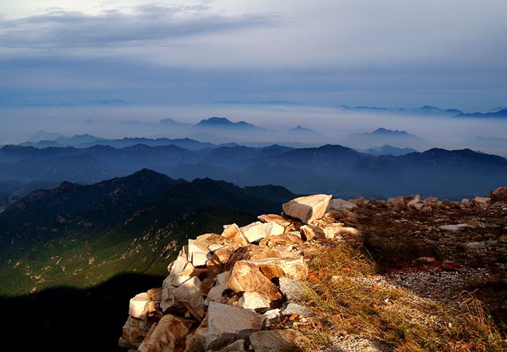 都山群峰陡峻、山巒起伏迭嶂,千米以上的有娘娘頂、芹草頂、圓蒼頂、白洼頂?shù)榷嘧叻濉U驹诙忌街鞣迳?,環(huán)顧四周,極目四野,茫茫蒼蒼,群山如豆。莽莽燕山就象大海的波瀾,澎澎湃湃,真有“一覽眾山小”和“胸懷天下”的感覺,讓人心曠神怡。