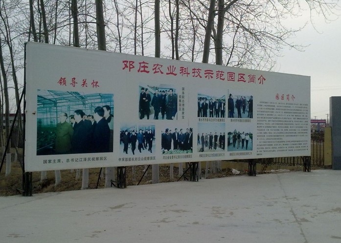 鄧莊農(nóng)業(yè)科技示范園區(qū)始建于1998年6月,占地500畝,建成高級日光溫室150棟,全智能連棟溫室2棟,并建成工廠化育苗中心、無公害檢測中心、組織培養(yǎng)中心、肉奶牛胚胎移植中心、技術(shù)人才培訓中心、凈菜加工配送中心六個中心。2001年,鄧莊園區(qū)被認定為省級農(nóng)業(yè)科技示范園區(qū)、河北省無公害蔬菜生產(chǎn)基地、河北省進京蔬菜生產(chǎn)供應基地。