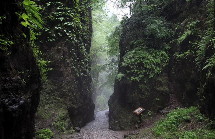步入景區(qū),造型逼真的“仙官”會將游人引進蝎子溝,此溝長25華里,因溝中遍生蝎子草而得名。該草形如幼桑,如肌膚觸動其葉,頓覺疼痛難忍,但少時即愈。蝎子溝內(nèi)有“一線天”、“龍?zhí)队吃隆?、“摩耳崖”等奇景,令人嘆為觀止。