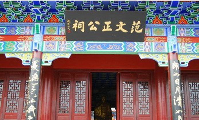 范化祠左右分立兩碑,左書“先憂”,右書“后樂”,門的兩邊對聯(lián)是“宰相出山中,劃粥埋金,二十年長白棲身,看齊右鄉(xiāng)賢,依然是蘇州譜系;秀才任天下,先憂后樂,三百載翰卿著績,問濟南名士,有誰繼江左風流。”對范仲淹一生的經(jīng)歷和業(yè)績作了全面的概括和評價。