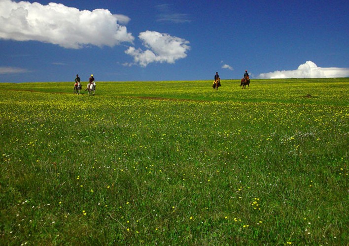 在遼闊的山頂草原上,您可以策馬揚(yáng)鞭,自由馳騁;您可以享用美味的野餐、燒烤,參加篝火晚會,觀賞歌舞;可以野營、睡帳篷,也可以享受深山峽谷中的豪華洗浴,乘坐凌空跨越幾道山梁的索道,駕駛滑翔機(jī)空中飛翔;在河畔森林中休閑納涼,在山坡小樓里讀書或發(fā)呆,和心愛的人一起看星星……
