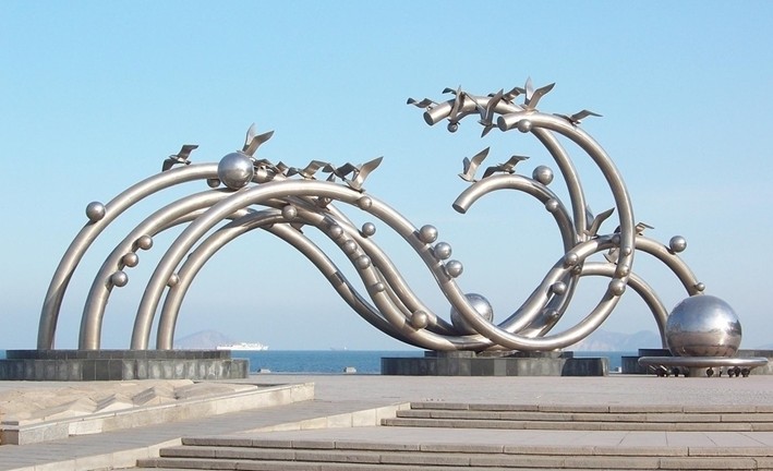 海之韻,一個(gè)富有詩意的名字,給予一個(gè)富于韻律的廣場, 加上自然的磅礴大氣和設(shè)計(jì)者的獨(dú)具匠心造就了大連東海岸上詩情畫意的海之韻廣場。它與星海廣場遙相呼應(yīng),像兩顆明珠照亮了大連的海岸線。版權(quán)所有山東聊城聊之旅國際旅行社有限公司,轉(zhuǎn)載必究!廣場面積3.8萬平方米,由13000平方米的鋪裝廣場、12000平方米的綠地和許多精致雕塑組成。該廣場的主角毫無疑問是雕塑,從西門進(jìn)入廣場,首先奪了你視線去的就是海之韻的主題雕塑,五根曲率不同的白鋼管為主體的雕塑,據(jù)說長19.9米,象征1999年9月是大連建市100周年;21只飛翔的海鷗象征飛向21世紀(jì);50個(gè)大小不同的球體即代表原子結(jié)構(gòu),又寓意建國50周年。在我看來五根波浪般的鋼管是波浪造就的五線譜,小鋼球是跳躍的浪花,大海在譜寫它獨(dú)有的樂章,海鷗在和樂起舞,這雕塑仿佛就是對(duì)蔚藍(lán)大海的抽象寫生。