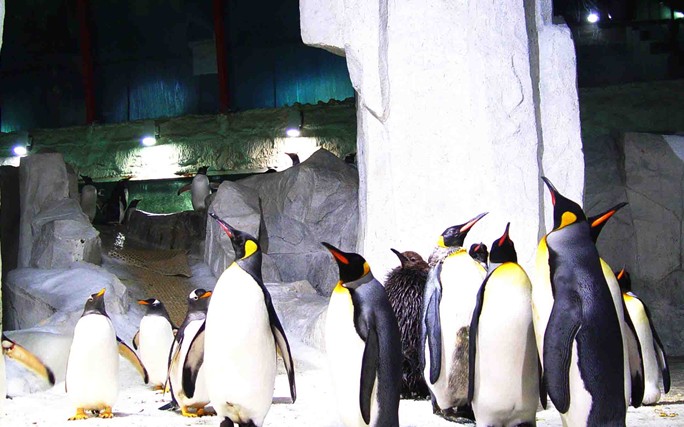 3.南極企鵝島——圣亞“兩大王牌”之一,中國最大南極企鵝基地,有近百只白眉企鵝和王企鵝。
