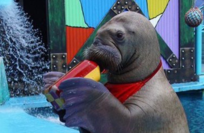 2.《功夫海象》表演——圣亞“三大表演”之一,海象海獅主演,國內(nèi)唯一能模仿邁克爾•杰克遜跳舞的功夫海象,風(fēng)格幽默搞笑,游客可參與互動。