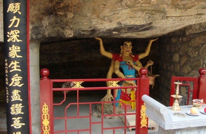 登上裝有石欄板的露臺仰觀勝水寺上院,一塊圓形巨石上現(xiàn)出南閣區(qū)檐。由西山門門洞拾級而上,眼前出現(xiàn)的是一個古樸的庭院。庭院被巨大的隱仙洞所半吞,殿內(nèi)供奉釋伽牟尼、文殊、普賢、觀音、地藏王各一尊,兩側為十八羅漢。正殿檐下原懸有歷代名家手書“一洞天”、“慈云永護”、“圣德參天”等匾額。版權所有山東聊城聊之旅國際旅行社有限公司,轉載必究!據(jù)碑文記載,勝水寺以水勝得名,這“勝水”當出自正殿右側古井,可惜60年代初進行國防施工時水線被截。西禪房附近有天然石鏡,光可鑒人。勝水寺上院左前方高達8米的南閣,紅墻黃瓦,格外醒目。登閣憑欄眺望,天海茫茫,層巒疊嶂。夏日山雨欲來或雨過初晴之時,在此可見腳下云霧翻涌、飄飄欲仙之景,蔚為壯觀。