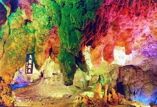 蘆笛巖在光明山中,洞穴入口在半山腰,因洞口過去長滿可制成笛子的蘆荻草而得名。蘆笛巖洞內最高處18米,最寬處93米,洞深240米,游程500米,是一個典型的巖溶洞穴。蘆笛巖洞天高闊、氣勢雄偉,景點高度集中,景物極盡造化神奇。琳瑯滿目的石筍、石鐘乳、石柱、石幔、石花晶瑩璀璨,色彩斑斕,擬人狀物惟妙惟肖,猶如一座宏偉壯麗的地下宮殿,陳毅元帥稱其"大自然的藝術之宮"。主要有獅嶺朝霞、紅羅寶帳、盤龍寶塔、原始森林、水晶宮、幽境聽笛等30多處景觀,移步成景,令游客在欣賞之余,不禁驚嘆大自然的神奇?zhèn)ゴ蟆?/p>