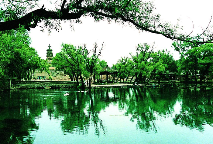 位于淶源縣城南側(cè),河溪縱橫,白楊綠地。可戲水、摸魚、篝火、燒烤、休閑、納涼極理想。拒馬河的源頭。泉水從淶源縣城涌出地面,涌水量3m3/秒,是中國北方最大的泉。源頭一側(cè)的"興文塔"始建于唐天寶三年(744年),是世界上唯一的斜剎塔,由唐代鑄錢作坊捐資建造。
