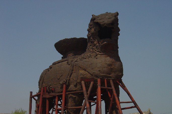 滄州鐵獅子位于滄州市政府駐地東南偏北16.5公里。坐落在東關(guān)村西0.5公里處。鐵獅身高5.78米,長5.34米,寬3.17米,體重約50噸。背負(fù)巨盆相傳是文殊菩薩蓮坐,獅身向南,頭向西南,兩左腳在前,兩右腳再后,呈前進(jìn)狀,姿態(tài)雄偉,昂首闊步,徐徐如生鐵獅是我國大型的驚巧鑄鐵工藝。也是我國著名發(fā)源的古跡。距今已有一千多年的歷史,它充分的顯示出我國古代勞動人民的智慧和藝術(shù)才華。解放后鐵獅子受到了黨和政府的重視與保護(hù),國務(wù)院首先把它列為全國第一批重點文物保護(hù)單位,并且對它進(jìn)行各種的修繕。