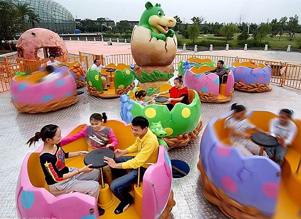 熱氣球和茶杯?毫不相干的兩個東西就這樣被組合在一起。僅僅設(shè)備運行沒有參與感?沒有關(guān)系每個座位都有手動旋轉(zhuǎn)轉(zhuǎn)盤,向左轉(zhuǎn)、向右轉(zhuǎn)?都隨你的心情!想象一下,帶著孩子乘坐,他們笑臉會延伸到那里?