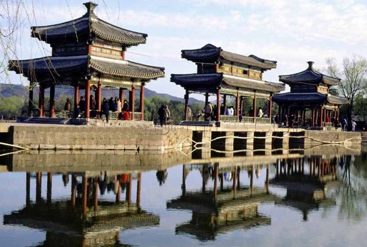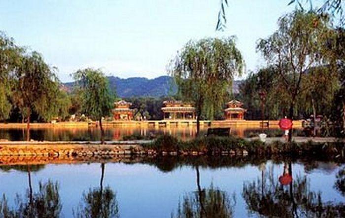 其中,清音閣:俗稱大戲樓。與北京圓明園同樂園中的戲臺同名,與現(xiàn)存故宮暢音閣、頤和園中德和園大戲樓形式相近。閣高三層,外觀雄偉。結構精巧,閣內(nèi)布景逼真,音響效果很好。清音閣平面方三間,樓閣三重,舞臺寬17米,進深15米。清音閣的三層樓,上層稱“福臺”,懸掛“清音閣”三字御制匾額 中層名“祿臺”,額題“云山韶渣”;下層曰“壽臺”,額題“響葉鈞天”,取“福祿壽三星吉祥”之意。壽臺的天棚上有天井,地板下有五口地井,其中除一口水井有水外,其余均為枯井。在舞臺下設置這些地井,是為了增強舞臺上的音響共鳴效果。有時也配合劇情,適當使用舞臺設施,如由三樓布成天降大雪情景,佛自天降也是從三樓懸系下來的,而菩薩渡海、妖魔破土而出則從舞臺下的地井內(nèi)上來的。水井也能配合劇情引水上臺。