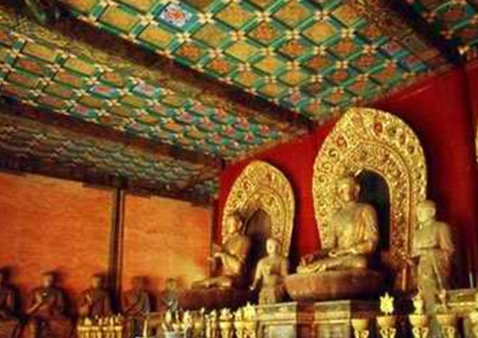 又稱前寺,位于承德市街東的武烈河東岸。依山傍水,風景秀麗。清康熙五十二年(1713年),諸蒙古王公為慶賀康熙帝60壽辰,上書“奏請”在承德避暑山莊外,圍建一寺院作慶壽盛會之所??滴醯坌廊?ldquo;恩準”,遂建造了溥仁、溥善二寺。溥善寺早已荒廢,溥仁寺便成康熙年間僅存的廟宇。溥通普,普遍、廣大意,有皇帝深仁厚愛普及天下之意。溥仁寺建筑形制為漢族廟宇的“伽藍七堂”式,四周有護墻環(huán)。山門內主軸線上布置主殿三座:天王殿、慈云普陰殿、寶相長新殿。天王殿內供佛像 6尊:彌勒佛、韋馱天將和四大天王。慈云普陰殿,單檐歇山頂,描金彩繪,雕梁畫棟,光彩奪目。殿內供過去佛迦葉佛、現(xiàn)在佛釋迦牟尼佛、未來佛彌勒佛。釋迦佛兩側為其兩大弟子迦葉和阿難。東西壇上供姿態(tài)各異的十八羅漢。天花板上有密宗六字真言。寶相長新殿,版權所有山東聊城聊之旅國際旅行社有限公司,轉載必究!單檐硬山布瓦頂,檐柱描金彩繪。內供 9尊無量壽佛。