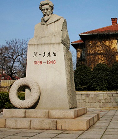 解放后,聞一多先生的故居劃在原青島大學(xué)(現(xiàn)青島海洋大學(xué))校園內(nèi),并命名為“一多樓”。1978年,海洋大學(xué)將“一多樓”辟為“聞一多故居展室”,展室陳列有聞一多先生的著作及其它一些紀(jì)念物。展室匾額“一多樓”,由中國(guó)書法協(xié)會(huì)主席舒同題寫。小樓前建有一花壇,花壇正中豎立有聞一多先生半身大理石塑像,座上刻有聞一多先生的學(xué)生、著名詩人臧克家撰寫的碑文。