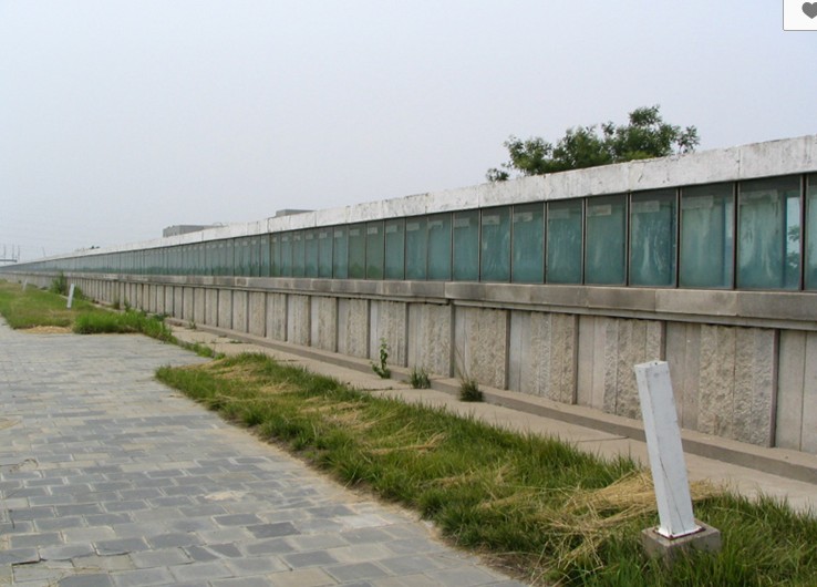 碑體由巖石基座和1093個(gè)盛有黃河水樣的方形玻璃水罐組成, 東西長790米,高2.5米,寬0.9米。碑?dāng)嗝鏄?gòu)造自下而上依次為:毛石基礎(chǔ)、淺白色花崗巖碑座、鋼化玻璃水罐、碑頂。黃河水樣取水工程由水利部黃河水利委員會(huì)動(dòng)員系統(tǒng)員工于1994年8月27日10時(shí),版權(quán)所有山東聊城聊之旅國際旅行社有限公司,轉(zhuǎn)載必究!同時(shí)從黃河源頭到入??诿扛?公里取水0.5立方米,共取1093個(gè)水樣,分別注入刻有經(jīng)緯度的方形玻璃罐中,按取水順序自源頭至入??谝来闻帕?。