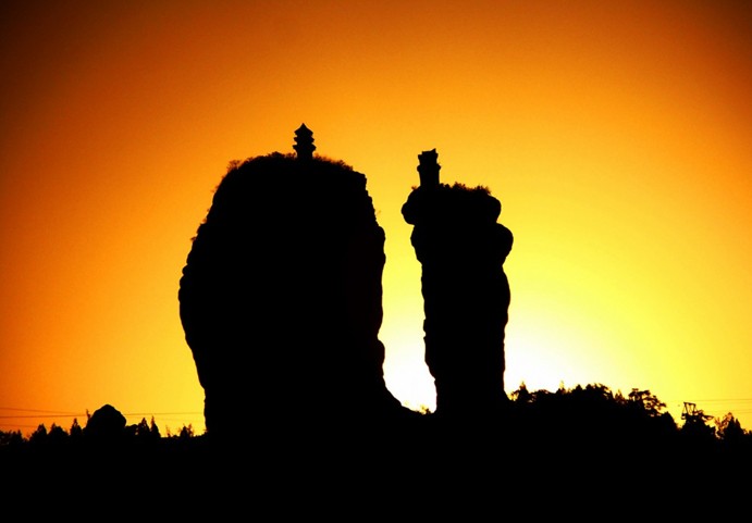 《承德府志》記載:“東塔(南峰)之巔有古廟,不詳何人所建,已就傾圮,旁有一小碑鐫“王仙生”三字”。清人紀(jì)曉嵐《閱微草堂筆記》說(shuō):山莊之西“有雙塔峰,亭亭對(duì)立,遠(yuǎn)望如兩浮圖,拔地涌出,無(wú)路可上,或夜聞上有鐘磬經(jīng)唄聲,晝時(shí)有云片往來(lái)。