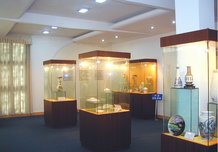 唐山陶瓷陳列廳位于陶瓷公司院內(nèi),是唐山日用及藝術(shù)陶瓷產(chǎn)品的縮影。展廳面積1000平方 米,展品9000余件。日用瓷以玫瑰牌、白玉牌、玉蘭牌較為著名,品種有造型各異的餐具、茶具、咖啡具;藝術(shù)瓷以鐵紅金圈結(jié)晶釉最為獨特,噴彩座盤、雕金加彩作品亦各具千秋。