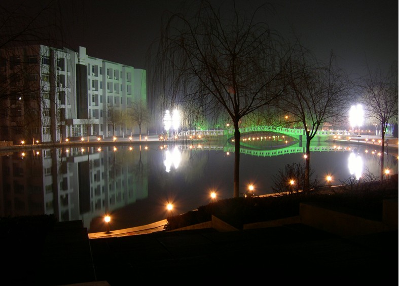 燕鳴湖——身份與精神的延展。燕大之美,在夫燕園一景,燕園之美,存諸燕鳴一湖。“燕”是歡樂的意思,宴會的“宴”在古代和這個字是通用的。它們似乎讓學校更多了些靈性。湖水倒映著一座“摩天大廈”,光亮的樓身在海風中散發(fā)出雄偉的魅力。一座石橋貫通湖面東西,橋下水壩把燕鳴湖分成南北兩個湖區(qū),把校園點綴得相當漂亮。每當?shù)谝豢|陽光灑向湖面,就看到眾多學子在湖邊晨讀;每當夜晚降臨,燕鳴湖更是成了同學們小聚的天堂,空氣中洋溢著溫馨的氣息。